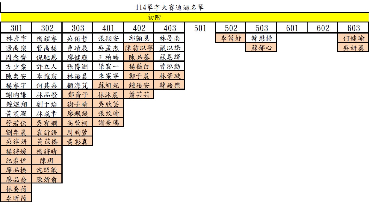 恭喜以上同學通過!