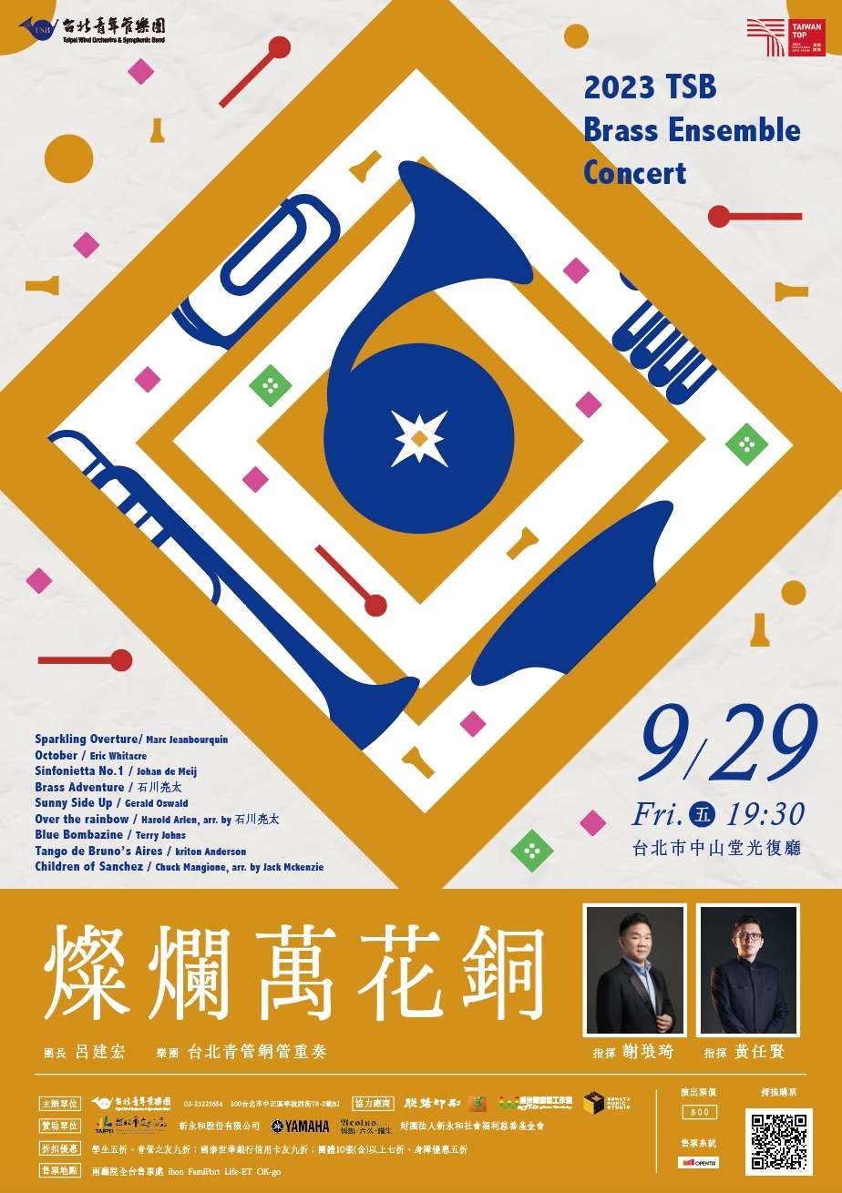 一、2023台北青管重奏音樂會,由謝琅琦、黃任賢老師指揮, 率領台北青管銅管與打擊團員,演出包羅萬象銅管重奏樂曲,為難得一見的精緻演出。
