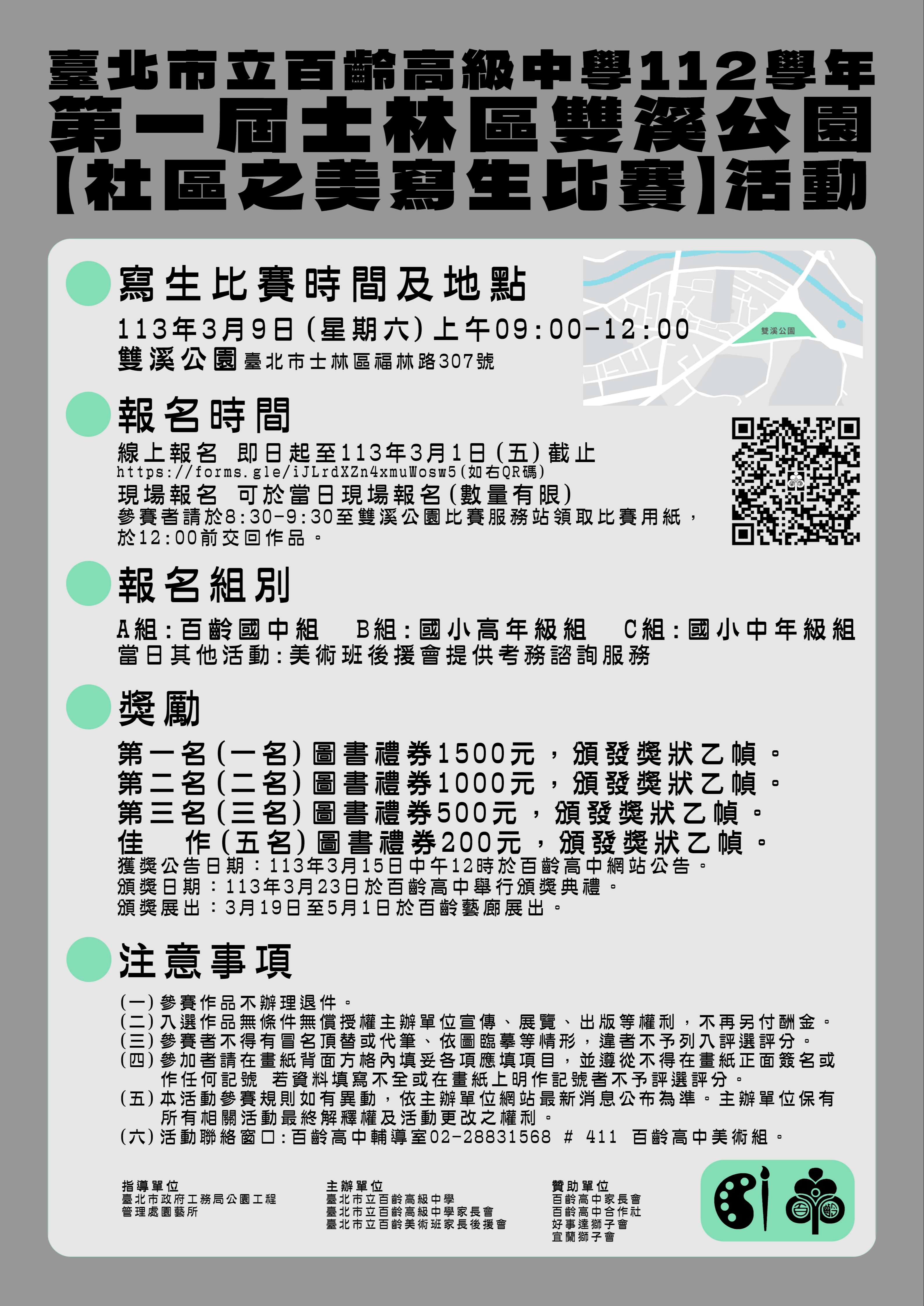 二、比賽地點:雙溪公園內(臺北市士林區福林路307號),若遇雨天照常舉行。