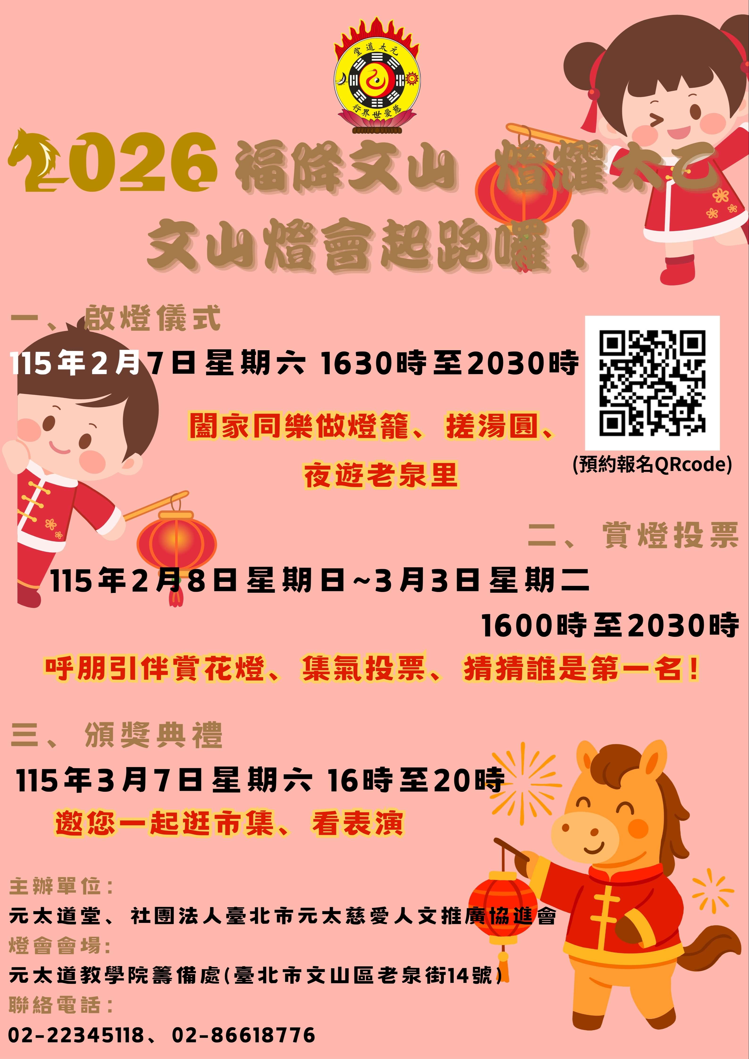 一、依據社團法人臺北市元太慈愛人文推廣協進會115年1月15 日元太會字第11501140012號函辦理。